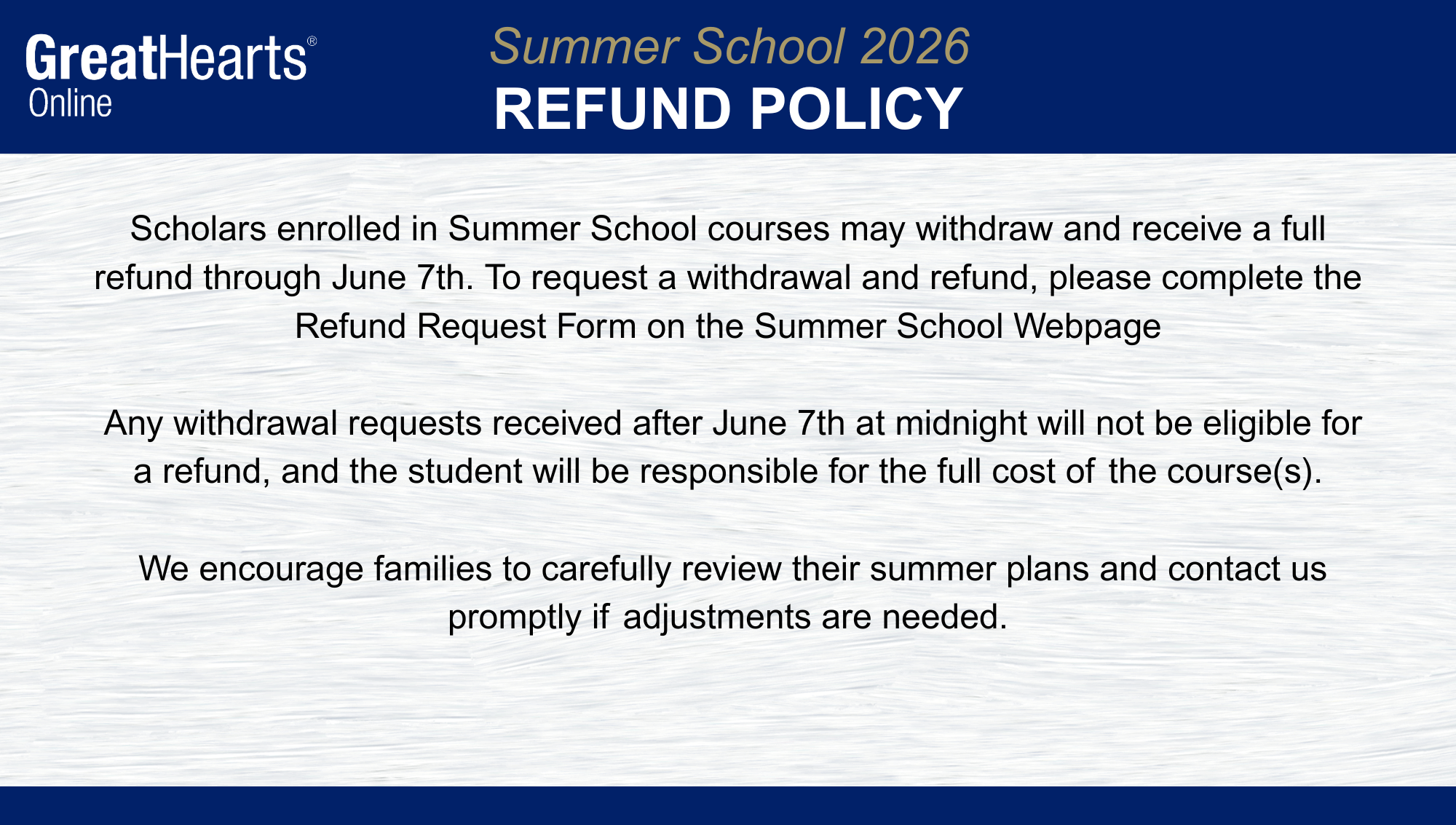 Great Hearts Online Summer School is open to all current and incoming Great Hearts students. All summer courses include daily, live video instruction M-Th, weekly tutoring opportunities, and access to our Great Hearts curriculum using the online learning platform, Canvas.